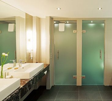HomeBadezimmer mit Doppelwaschtisch, Dusch- und WC-Abteil
