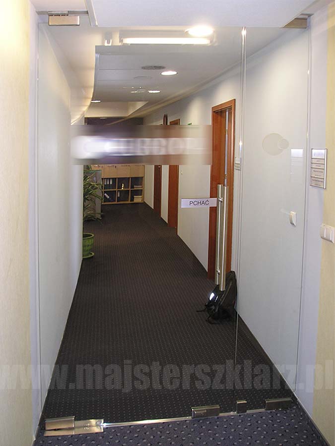 Drzwi szklane z samozamykaczem podłogowym wewnątrz lokalu