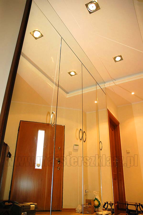 ściana z luster w przedpokoju dająca efekt powiększający pomieszczenie