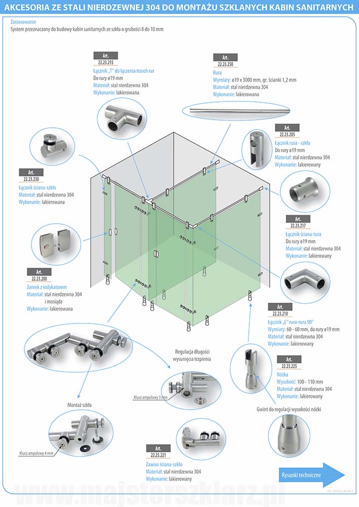 Okucia systemy do kabin prysznicowych drzwi parawanów szklanych i inne.