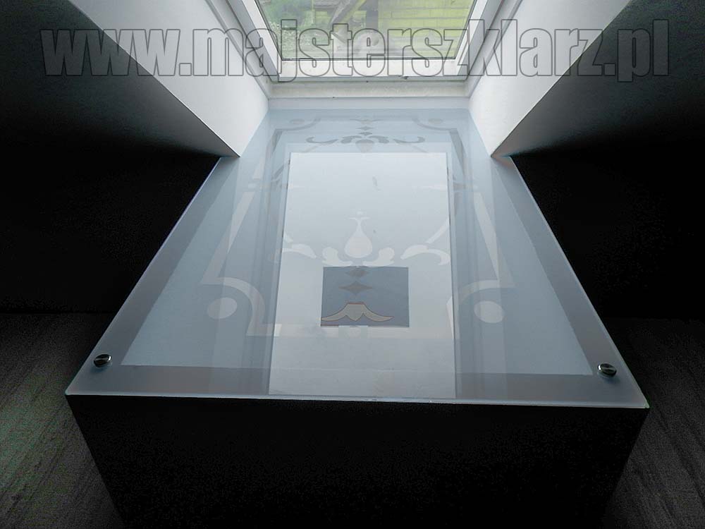 świetlik szklany z piaskowanym tłem, wzór przeźroczysty
