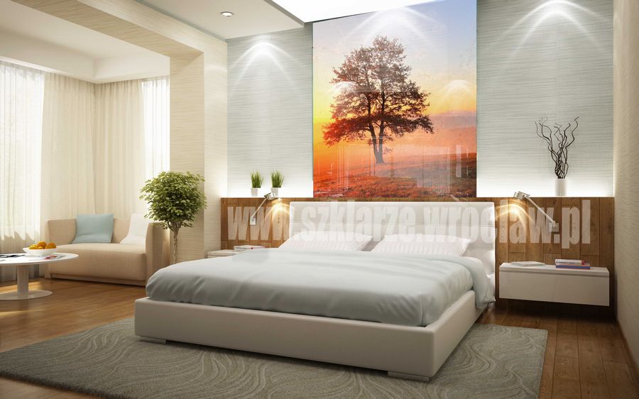 Zdjęcie w sypialni, trwały nadruk na szkle drzewa