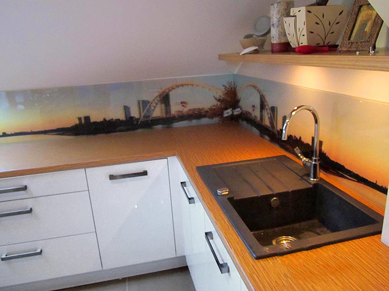 Panel szklany w kuchni zamiast kafli – ciekawy panoramiczny motyw