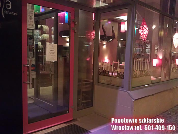 Natychmiastowa wymiana szyby klejonej w godzinach wieczornych w restauracji indyjskiej MASALA