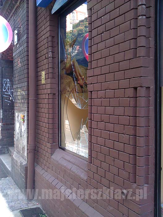 Wybita szyba w witrynie sklepowej przy ul. Poniatowskiego Wrocław Sródmieście