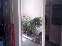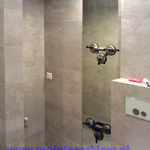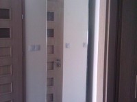 Montaż lustra fazowanego w mieszkaniu (Wrocław KRZYKI) na dystansie wynoszącym ok 30 mm od ściany. Celem zdystansowania lustra jest jego podświetlenie paskiem LED