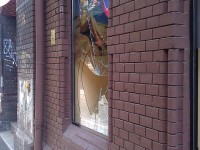 Wybita szyba w witrynie sklepowej przy ul. Poniatowskiego Wrocław Sródmieście